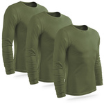 Zestaw 3 sztuk bawełnianych koszulek z długim rękawem - kolor khaki