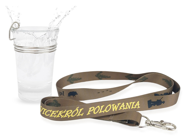 W jego skład wchodzi kieliszek szklany o pojemności 40ml oraz smycz myśliwska z nadrukiem VICEKRÓL POLOWANIA zakończona niklowanym karabińczykiem.