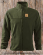 Myśliwska buza polarowa rozpinana, kolor khaki z naszytym emblematem: GŁOWA BYKA